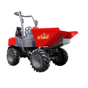 Le dumper permet de transporter des matériaux non conditionnés comme gravats, sable ou terre. Engin maniable et polyvalent sur 4 roues, sa benne en face avant peut déverser son chargement à un endroit précis.